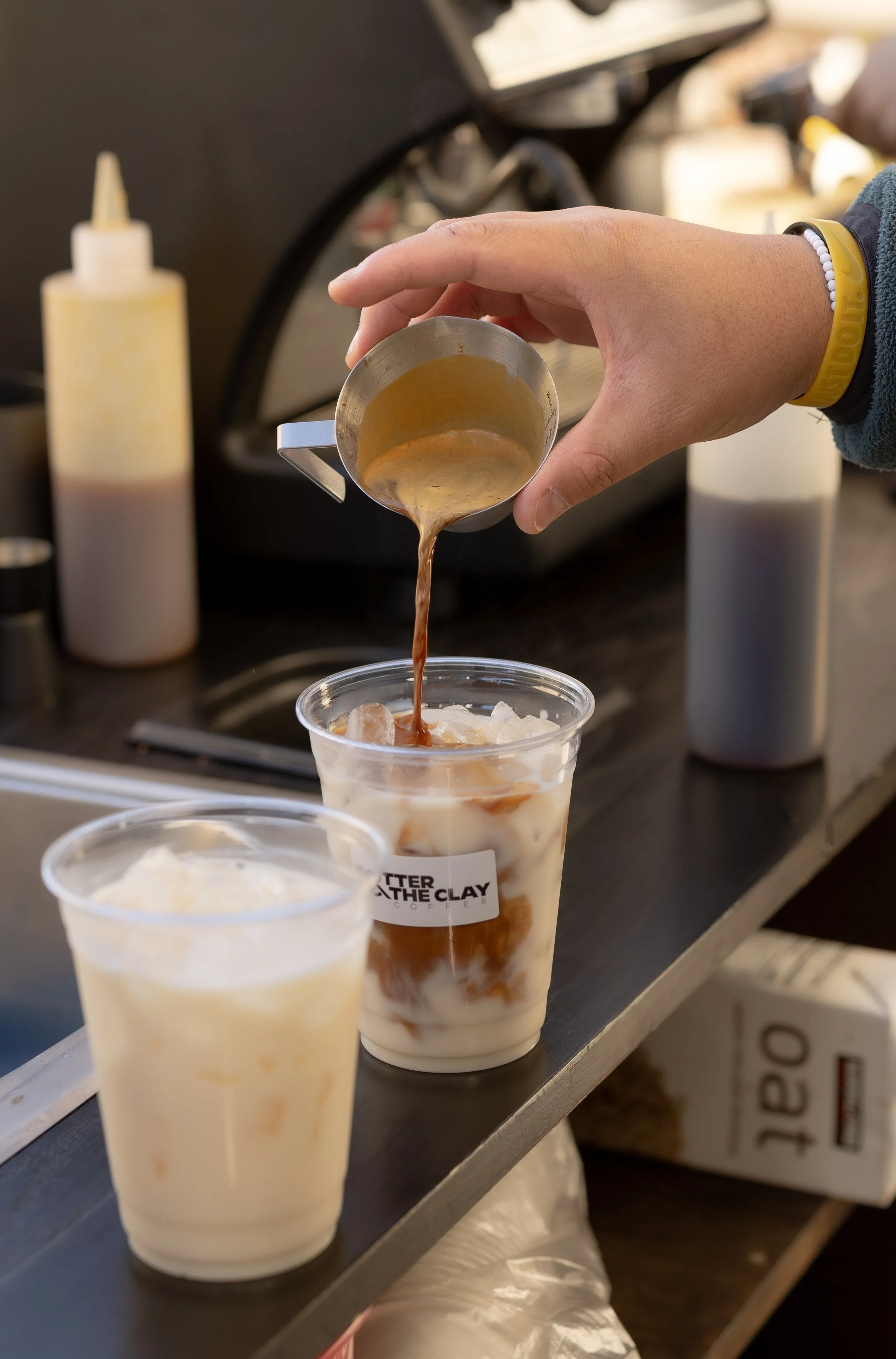 Currently, we are operating as an espresso bar (including all espresso based drinks like lattes, cortados, and americanos), all of which can be made hot or iced! For our non-coffee enthusiasts, steamers and hot chocolate are available. All syrups are homemade.
